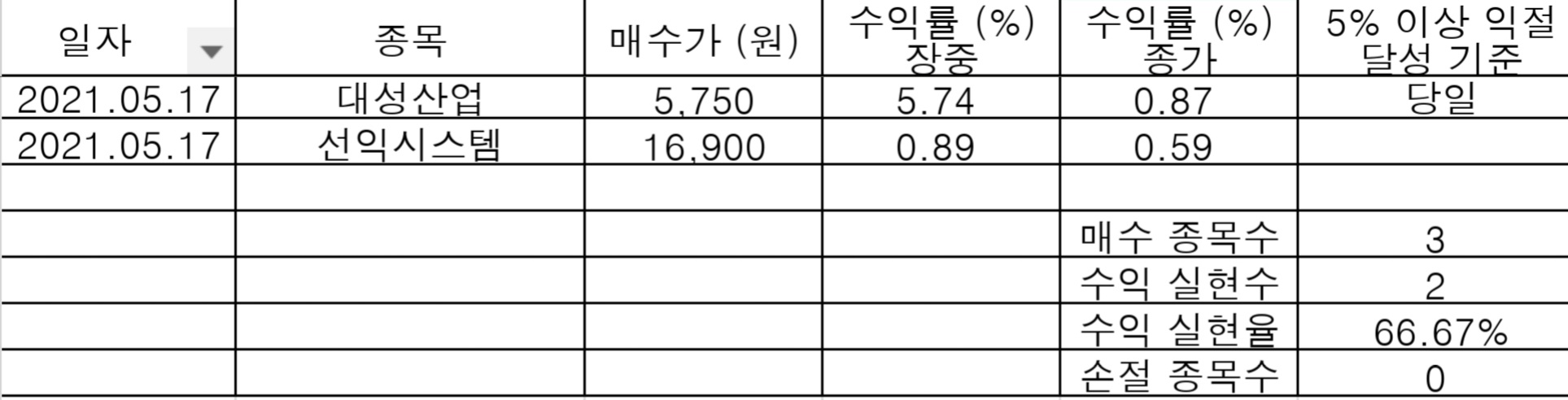 | [5% 수익내기] 2021.05.21 대덕 (21.05/27 추가) (0) | 2021.05.31 |